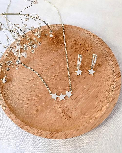Sterling Silver Tri Star Necklace from the Celestial collection.