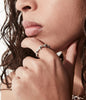 The Bow Infinity Ring in sterling silver forms a continuous loop of interlocked sculptural bows. Each bow is shaped in relief, joining to the next in an unbroken flow of form and sentiment. Refined in scale, the silhouette reads as feminine, structural, and infinitely wearable.