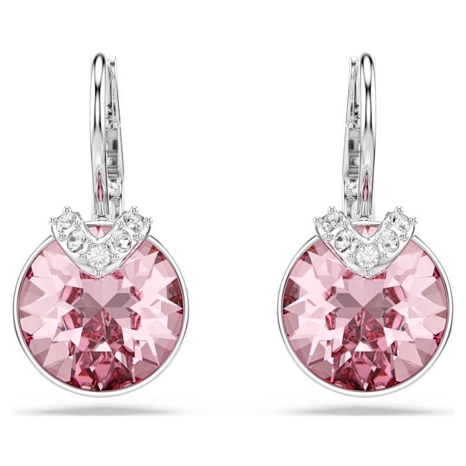 Swarovski Bella V Drop Earrings Round Cut, Pink, Rhodium Plated