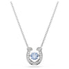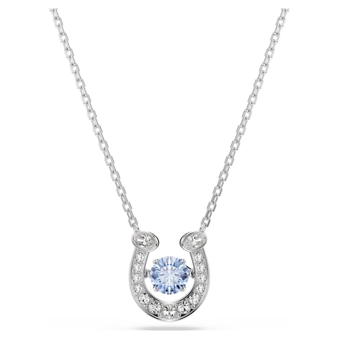 Maximise your glow with this meaningful horseshoe pendant. Featuring a rhodium plated motif, the centre of the design reveals a faceted blue dancing stone that creates a wondrous play of light. Wear this pendant yourself or gift it to someone special as a symbol of success.