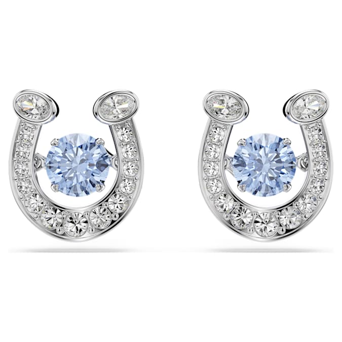 Embrace the free spirit of the horse with these stunning Swarovski earrings. Each rhodium plated horseshoe features a blue dancing stone at the centre that creates a constant play of light. A colourful gift for those chasing success.