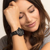 If your wardrobe has a darker flair then this all black watch may just take your fancy. This highly polished timepiece is well suited to those with an edgy side, for example, it would style well with a gothic or grunge style. As with the previous model this watch would combine well with a range of different colours, making it an adaptable accessory for everyday attire.