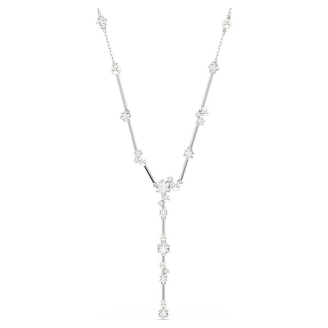 Creating its own constellation of light and wonder, this dazzling Y necklace is the perfect mirror to the stars. The inspired design features a cluster of different-sized Swarovski Zirconia and Swarovski Crystal Pearls, which appear to float among the jewellery’s metallic bars. The long strand at the centre delivers an extra trail of stardust, while the lobster closure enables a perfect fit. Wear it any time of day or night to let your outfit shine.